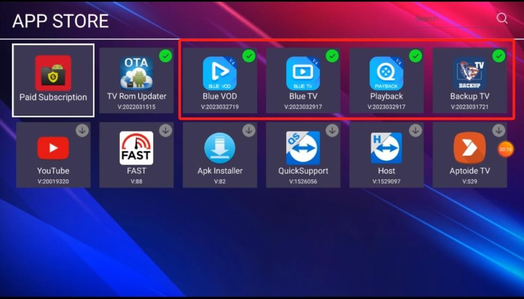 Our new 5 max box does not have Blue TV or Blue MOD available in app store. How do i download?